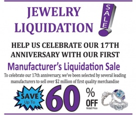 Take up to 60% off on jewelry at the Ridglea Watch and Jewelry Manufacturer Liquidation Sale.